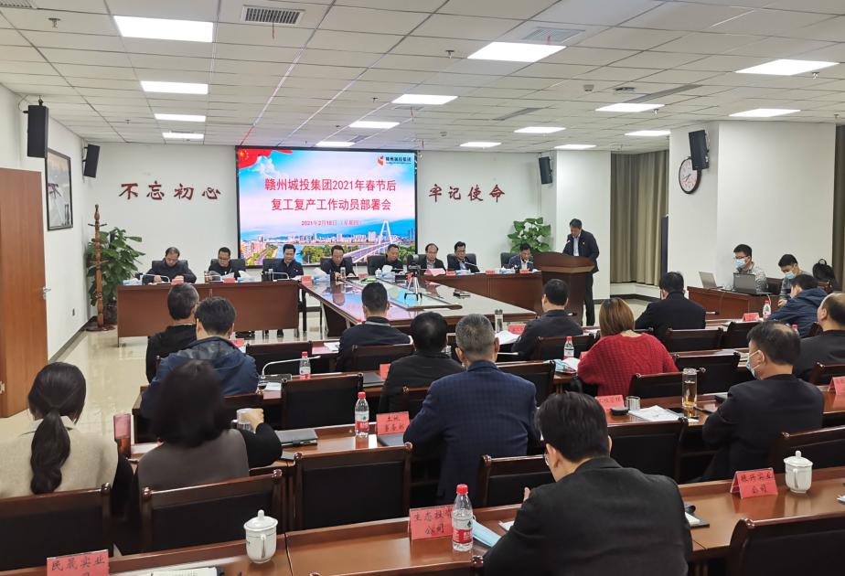 2月18日晚上,贛州城投集團(tuán)召開2021年春節(jié)后復(fù)工復(fù)產(chǎn)工作動(dòng)員部署會(huì)。集團(tuán)黨委副書記(主持工作)、總經(jīng)理李國泉主持會(huì)議并講話,集團(tuán)其他高管出席會(huì)議,全體中層等參加會(huì)議。