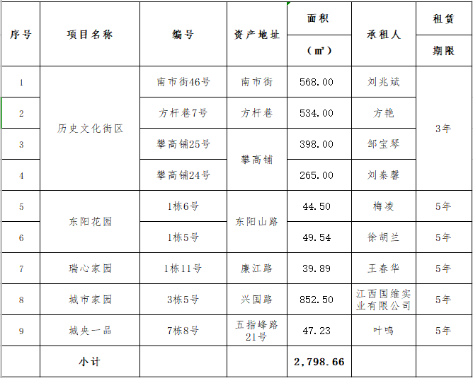 2021年5月27日上午10時,在贛州市公共資源交易中心舉行的贛州振興實業(yè)有限責任公司五指峰路等三十九宗資產(chǎn)公開招租(項目編號GZCQ2021070),現(xiàn)將公開招租成交情況公示如下: