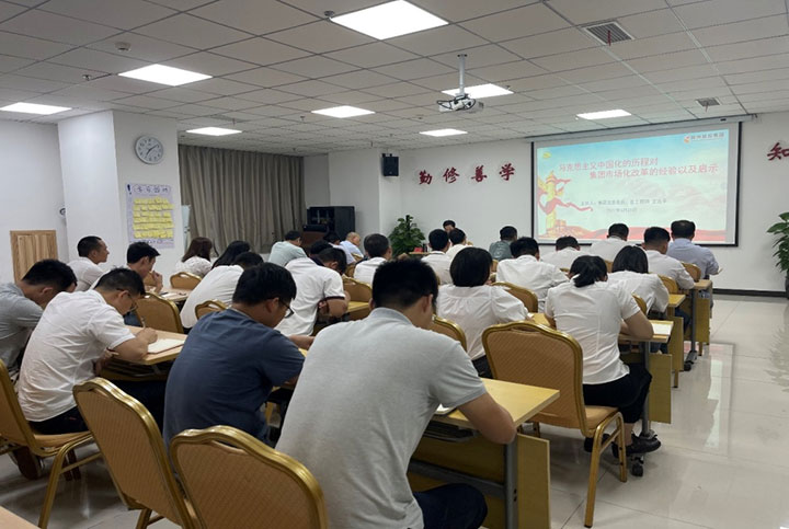 王遠平從馬克思主義哲學的角度,結合自身學習黨史的心得體會,講述了馬克思主義中國化的歷史進程,梳理了馬克思主義中國化各個時期的重要成果,歸納了馬克思主義中國化的四個特征,深刻闡述了馬克思主義中國化的豐富內涵。結合集團實際,王遠平從堅持問題導向、發(fā)揮人力資源優(yōu)勢、統(tǒng)籌兼顧等四個方面就如何推進集團市場化改革進行闡述,引導參會人員深刻領會馬克思主義中國化的經驗以及啟示,領悟工作方法、指導工作具體實踐,為集團市場化改革做出更大貢獻。