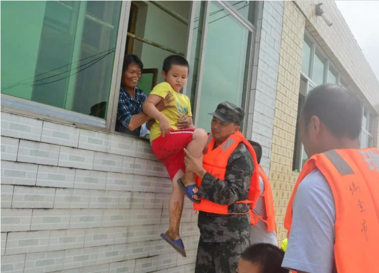 軍民魚水,無私守望。整個救援過程中,劉波同志沖鋒在前、甘當(dāng)人梯。他頻頻上演飛身一跳,把身處險境的群眾托舉上岸;他把自己當(dāng)梯子,讓困在屋內(nèi)的老人踩著肩膀下到船上;他把兩歲幼兒抱在懷里,用自己的體溫捂暖瑟瑟發(fā)抖的孩子……這一幕幕驚險而溫暖的救人場景,被災(zāi)區(qū)群眾深深銘記,紛紛點贊。