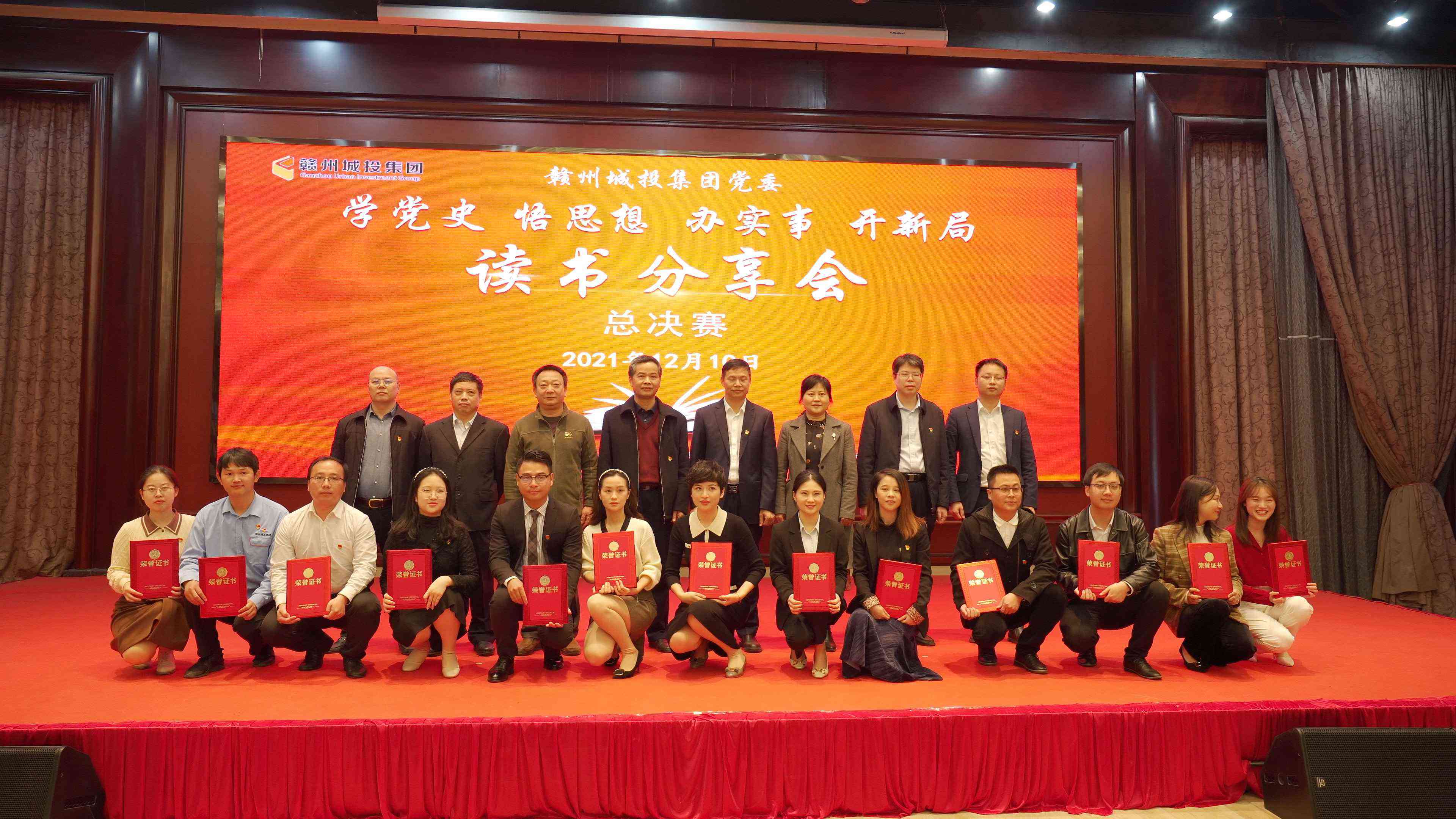 12月10日上午,贛州城投集團(tuán)黨委“學(xué)黨史 悟思想 辦實(shí)事 開(kāi)新局”讀書(shū)分享會(huì)總決賽圓滿(mǎn)落幕。市國(guó)資委黨委委員、副主任黃曉東和相關(guān)科室負(fù)責(zé)人、市國(guó)資系統(tǒng)其他集團(tuán)分管領(lǐng)導(dǎo)以及黨群口負(fù)責(zé)同志蒞臨指導(dǎo),集團(tuán)黨委副書(shū)記黃家偉出席活動(dòng),集團(tuán)全體黨員到現(xiàn)場(chǎng)觀看。