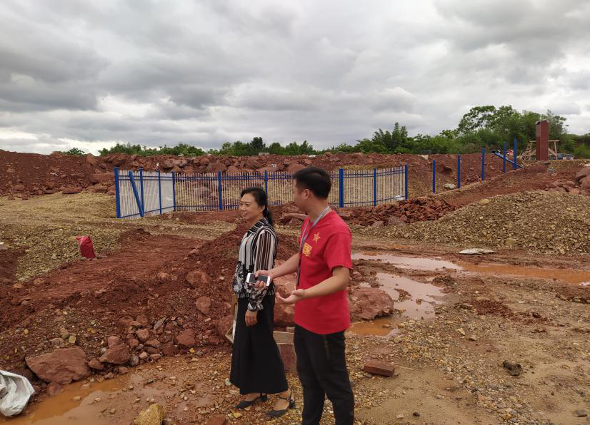 (上圖為謝健在現(xiàn)場協(xié)調(diào)砂石堆場建設(shè)工作。)